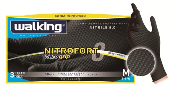 NITROFORT GUANTI NITRILE 3 STATI CON GRIP -8g/m-240mm-50pz-NERI